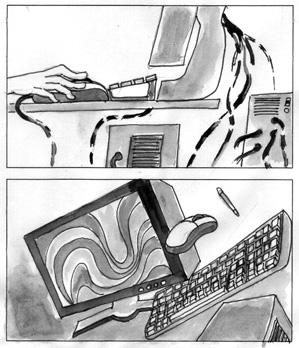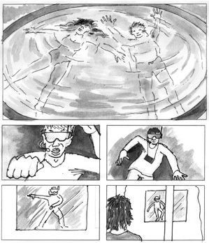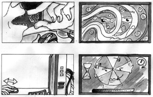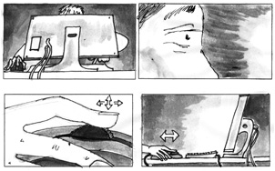 Storyboardzeichnungen zum Filmentwurf "In der Schwebe", Realfilm und Trick, 15min, 2007